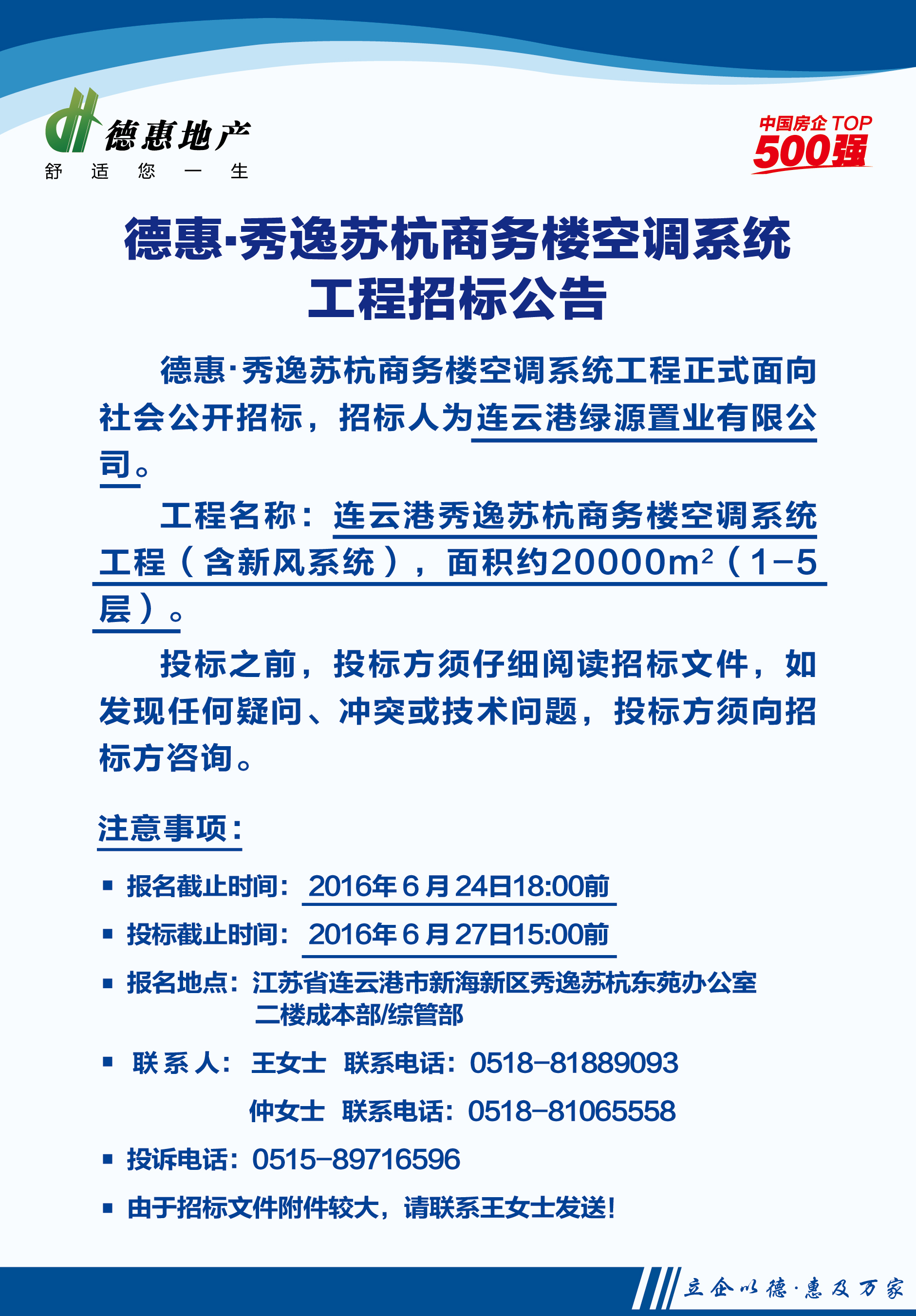 连云港德惠·秀逸苏杭商务楼空调系统工程招标公告