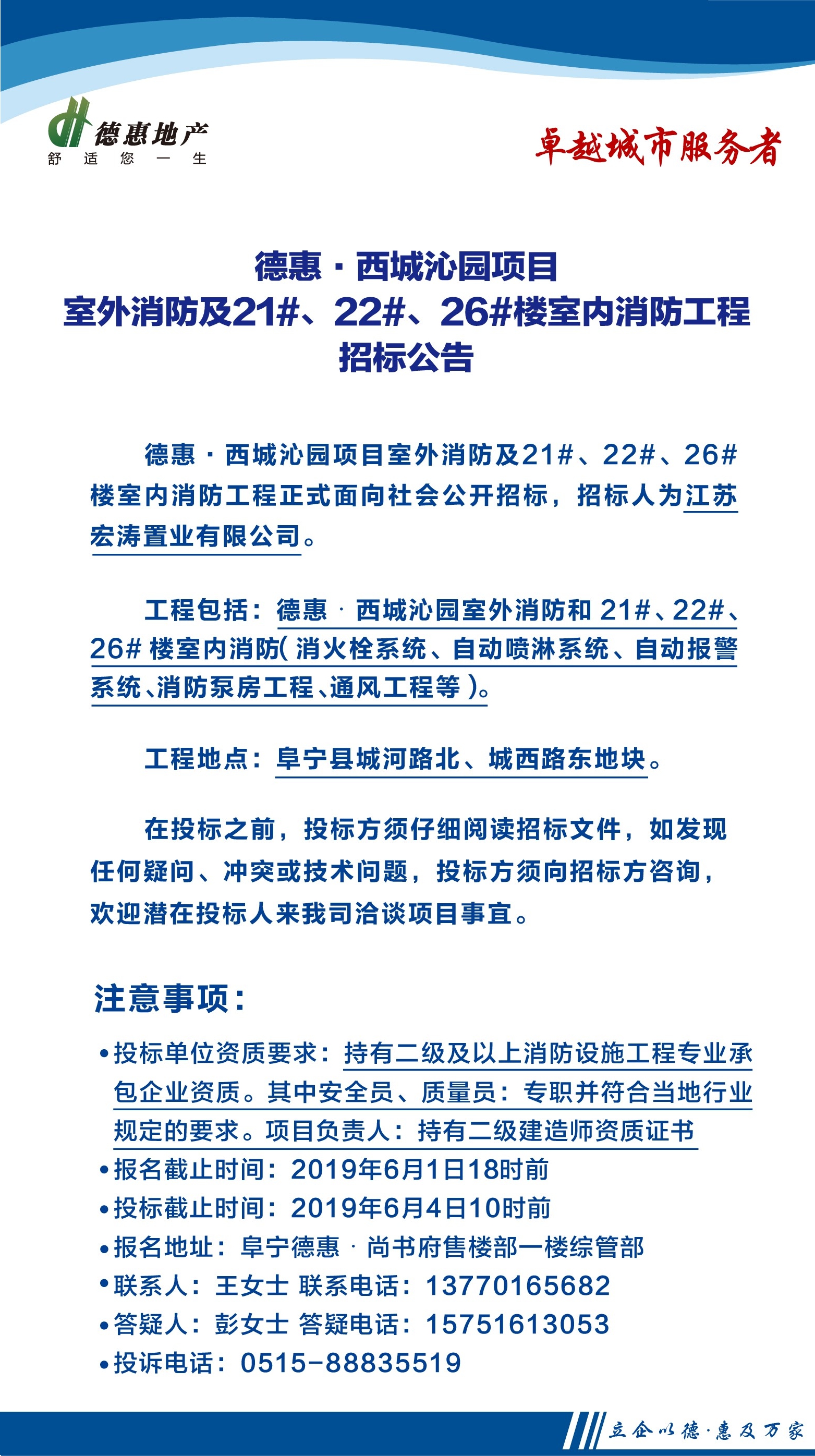 德惠·西城沁园项目室外消防及21#、22#、26#楼室内消防工程招标公告