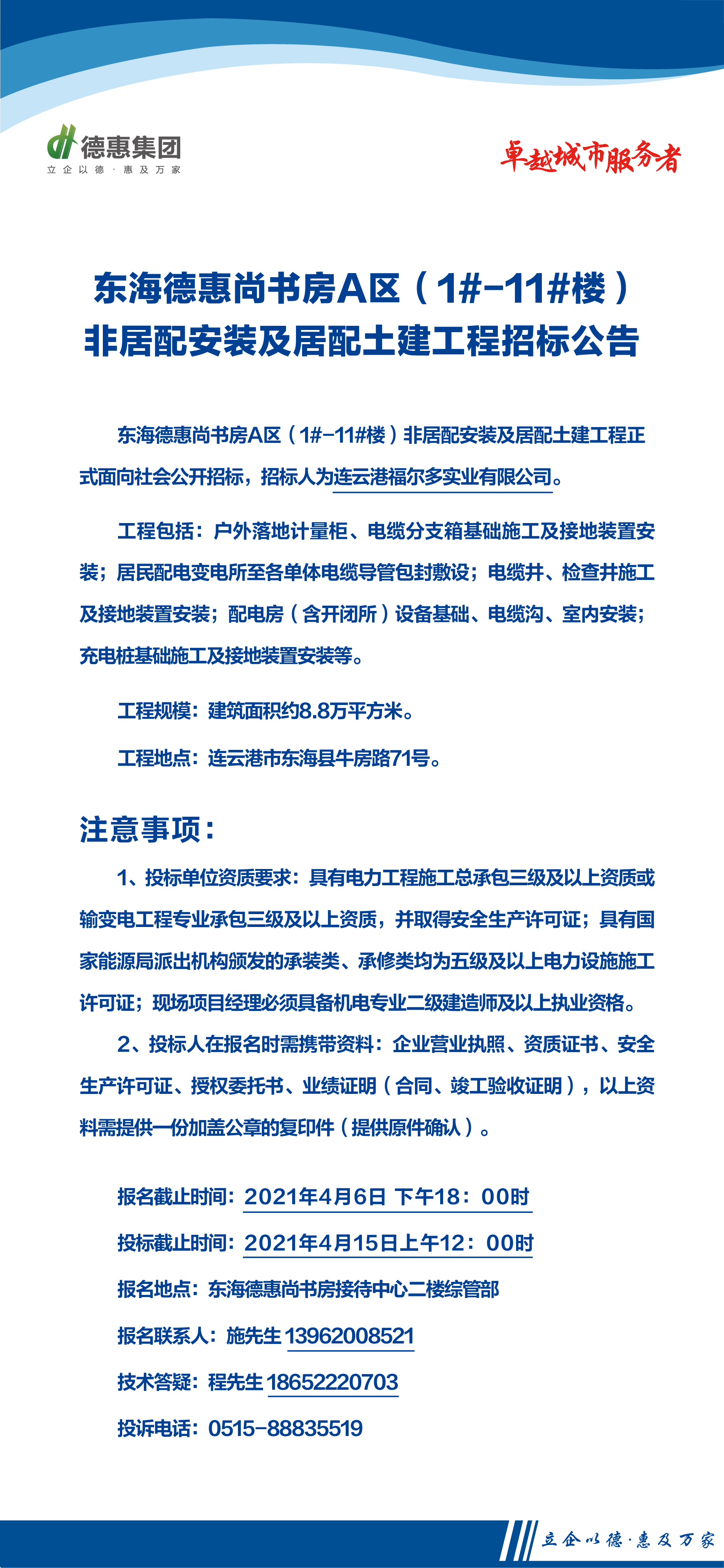 东海德惠尚书房A区(1#-11#楼)非居配安装及居配土建工程