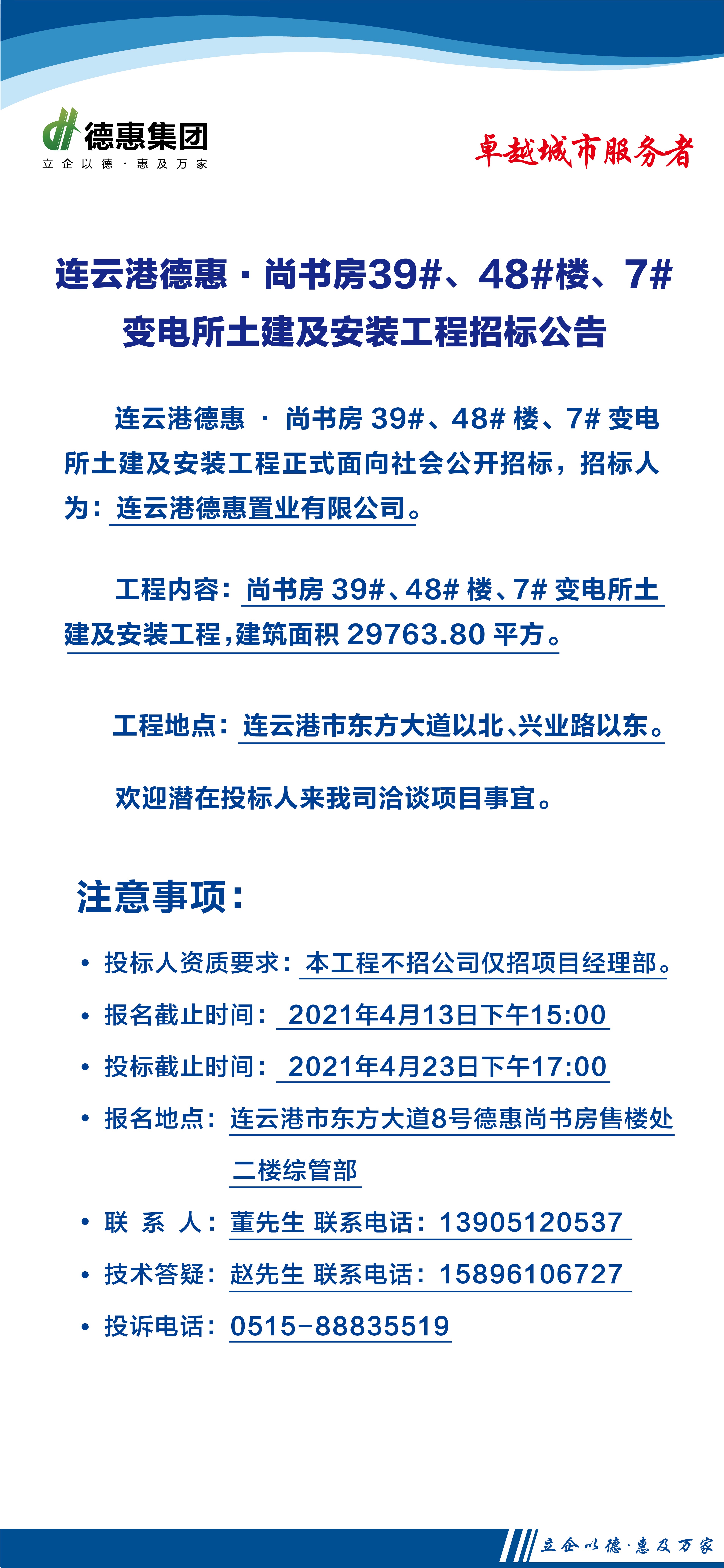 连云港德惠·尚书房39#、48#楼、7#配电房土建及安装工程