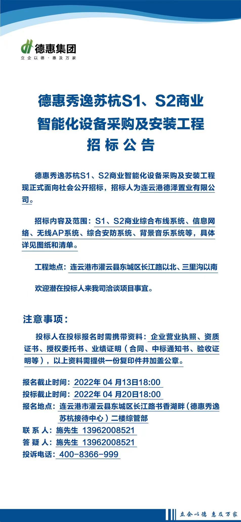 德惠秀逸苏杭S1、S2商业智能化设备采购及安装工程