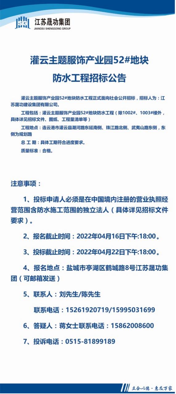 灌云主题服饰产业园52#地块防水专业分包工程
