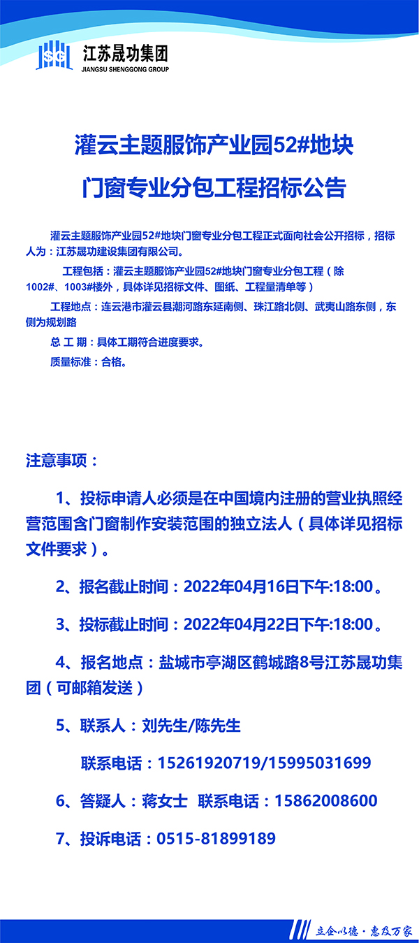 灌云主题服饰产业园52#地块门窗专业分包工程