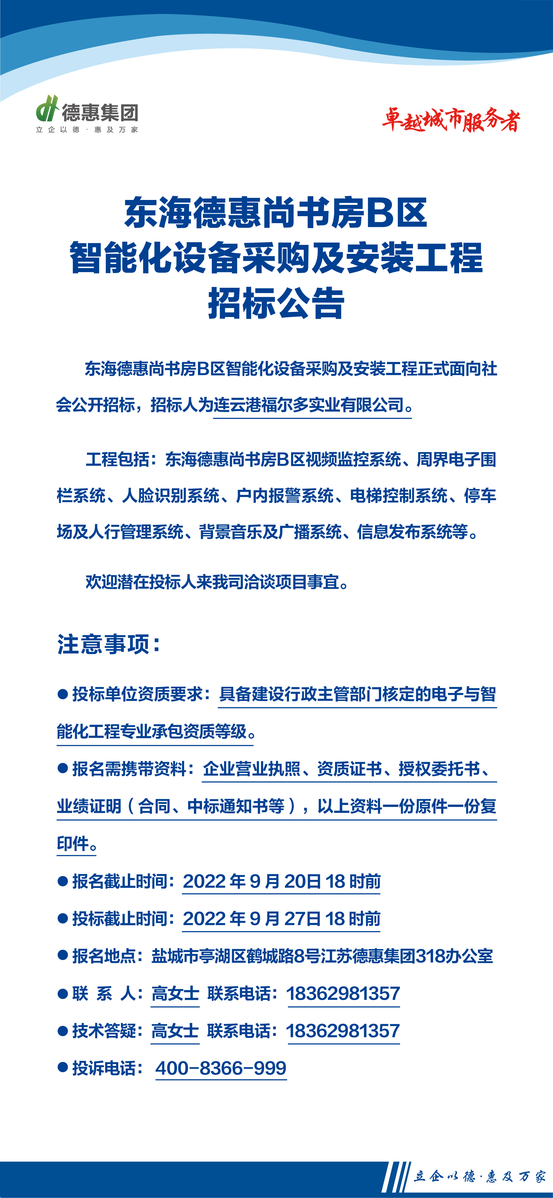 东海德惠尚书房B区智能化设备采购及安装工程