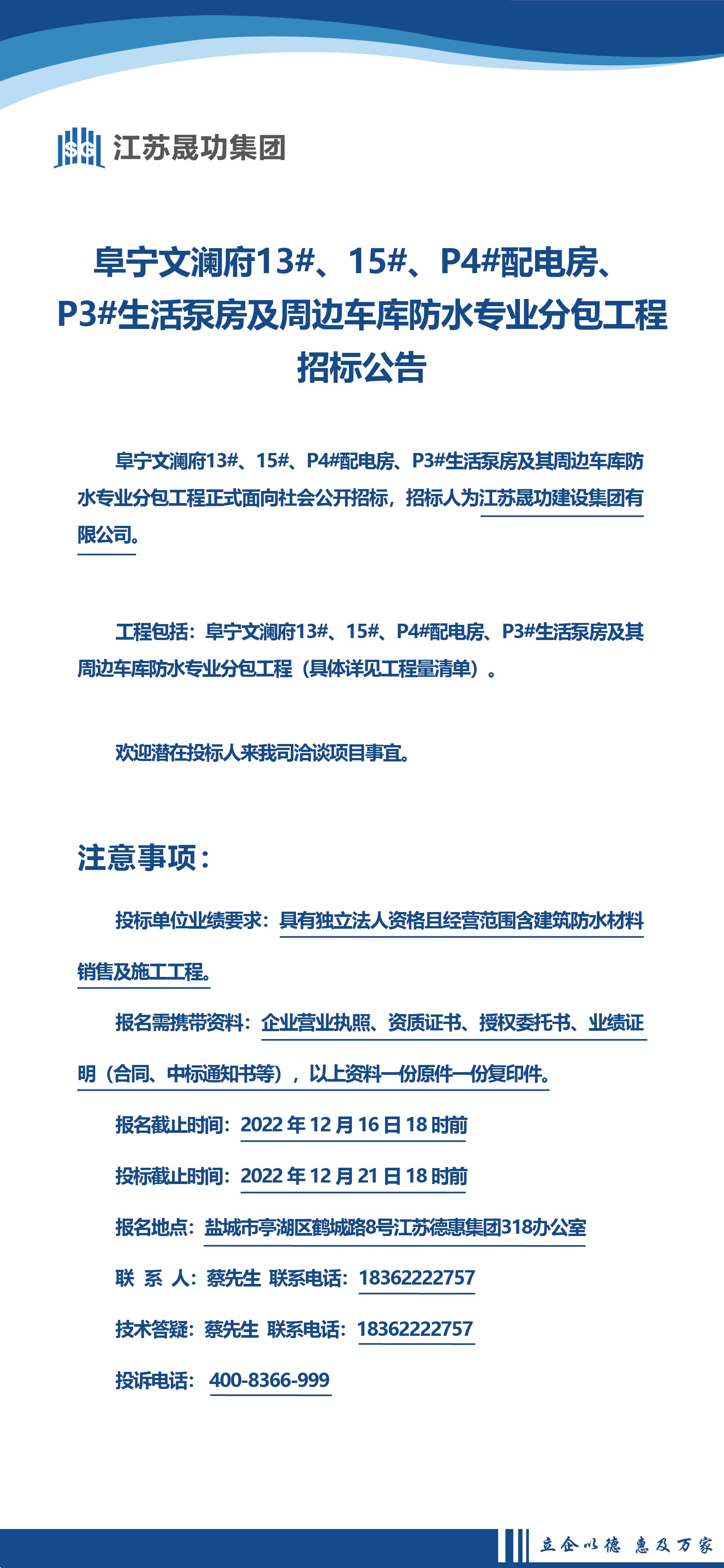 阜宁县文澜府二期13#、15#、P4#开闭所配电房、P3#生活泵房及其周边车库防水专业分包工程