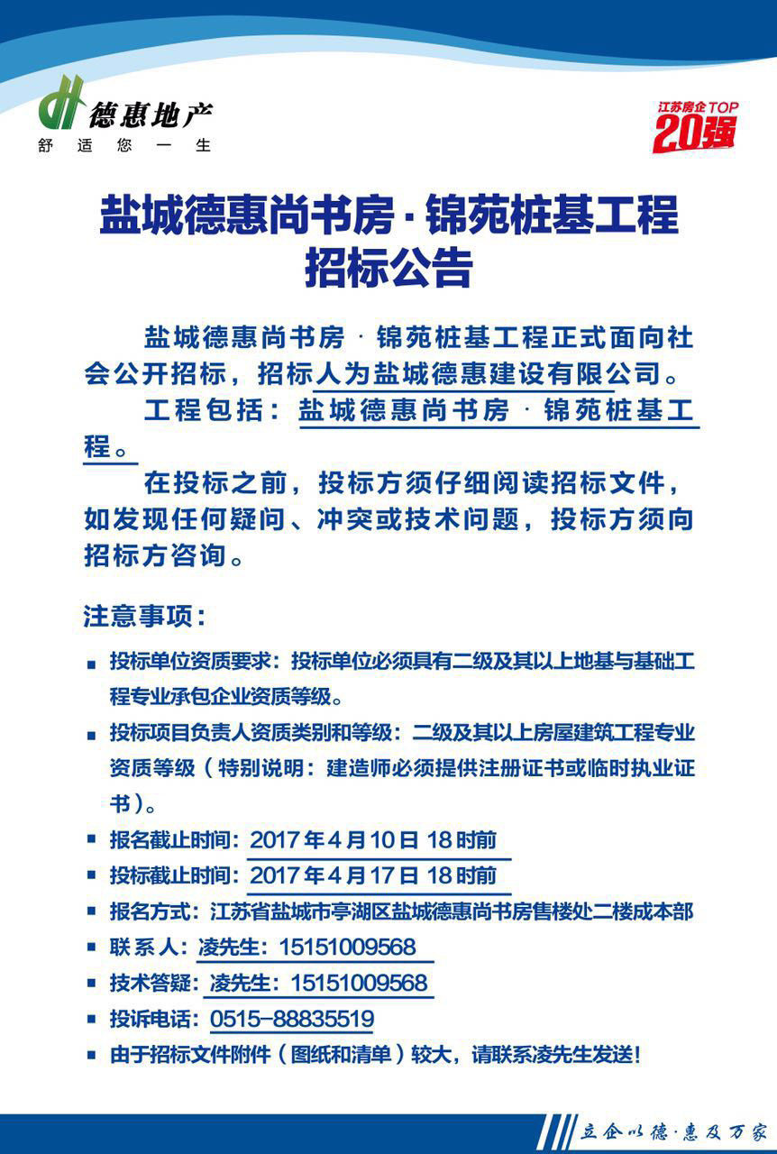盐城德惠尚书房•锦苑桩基工程招标公告