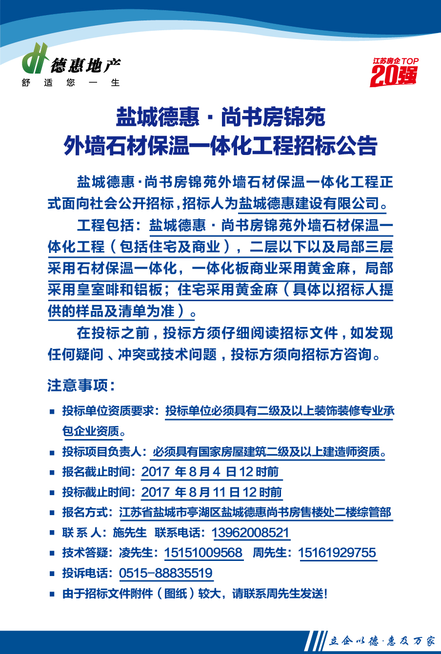 盐城德惠•尚书房锦苑外墙石材保温一体化工程招标公告