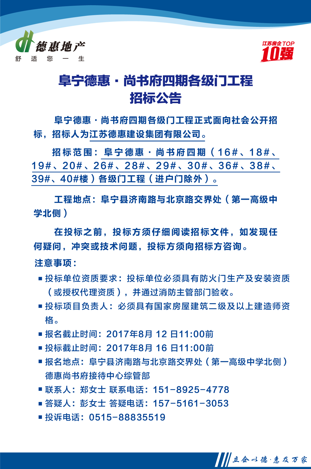 阜宁德惠·尚书府四期各级门工程招标公告