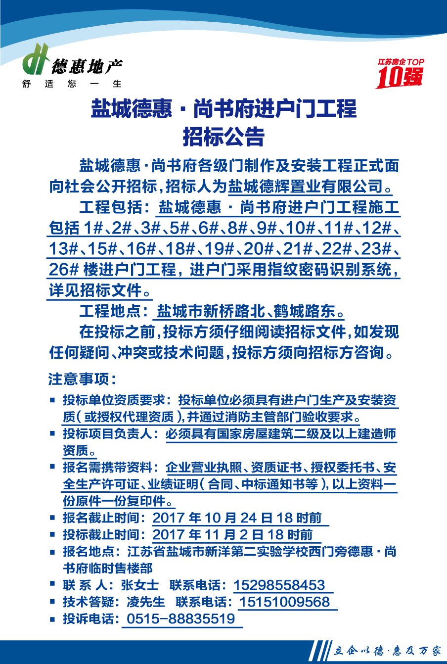 盐城德惠·尚书府进户门工程招标公告