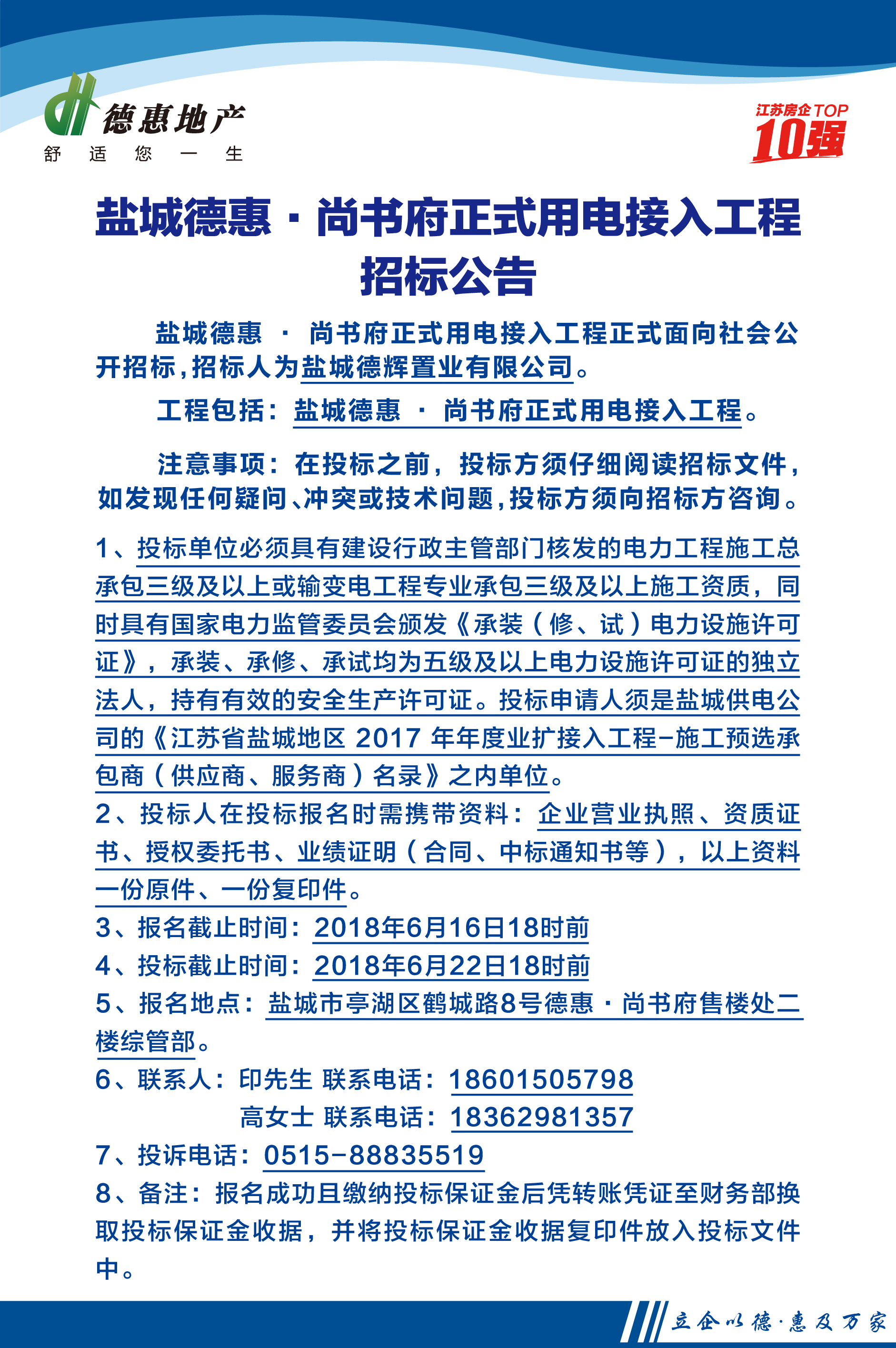 阜宁德惠·尚书府四期钢构雨棚工程招标公告