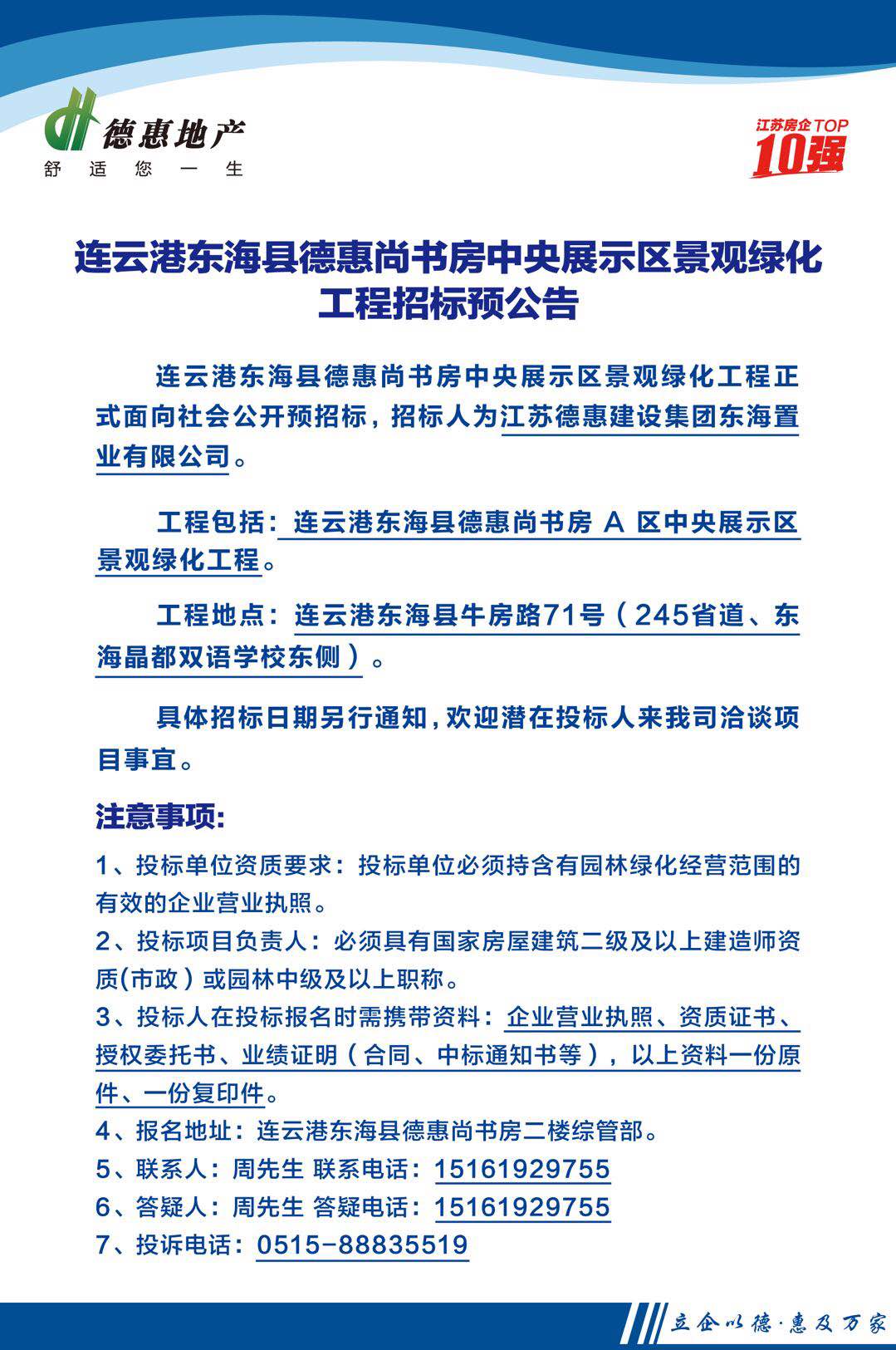 连云港东海县德惠尚书房中央展示区景观绿化工程招标预公告