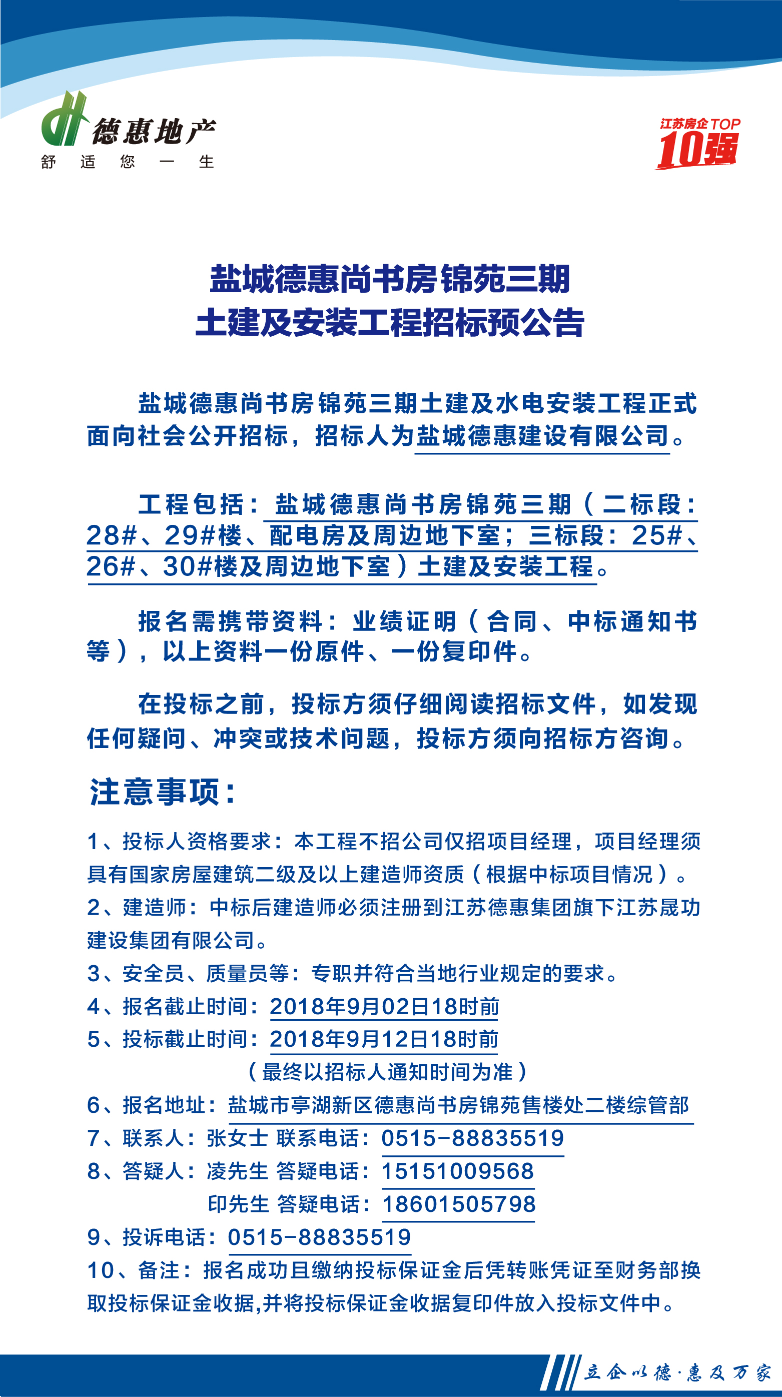 盐城德惠尚书房锦苑三期土建及安装工程招标预公告