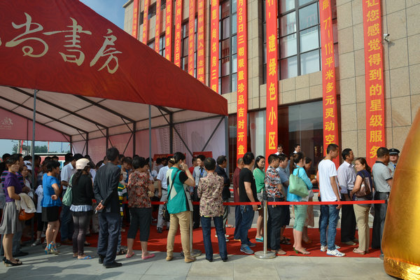 6月29日,烈日当空,阜宁城南新区德惠·尚书房售楼中心人潮涌动。德惠·尚书房三期112套稀缺房源火爆开抢。