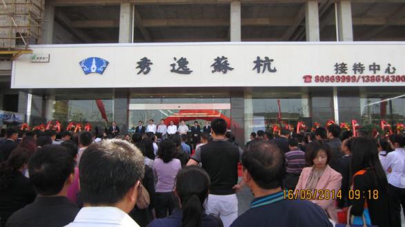 2014年5月16日,由江苏德惠集团开发的项目德惠· 秀逸苏杭新接待中心隆重开业。德惠集团朱文亮董事长携集团部分高层领导集体亮相,参加庆典的还有绿源、晟功、桩基、装饰、绿化等各分公司代表,以及前来观礼的新老业主们。本次庆典还有幸邀请到了连云港市农行和市监理公司的部分领导。